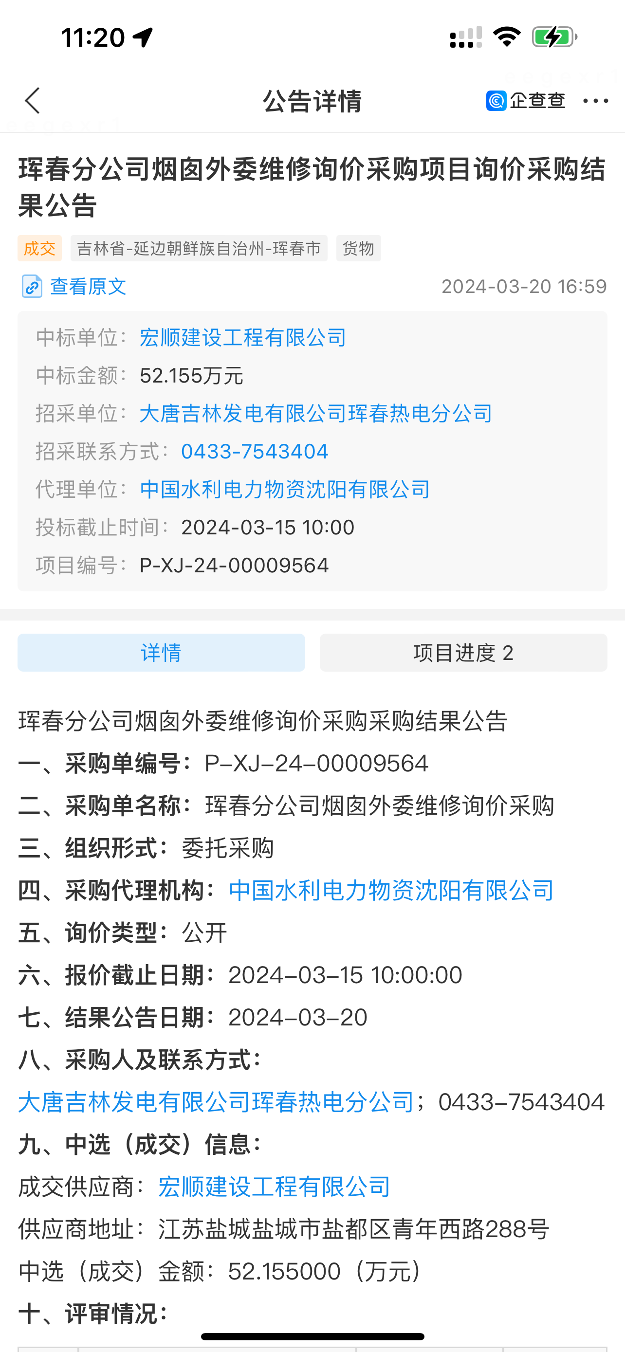 熱烈祝賀我公司中標大唐吉林發電琿春熱電的煙囪外委維修工程