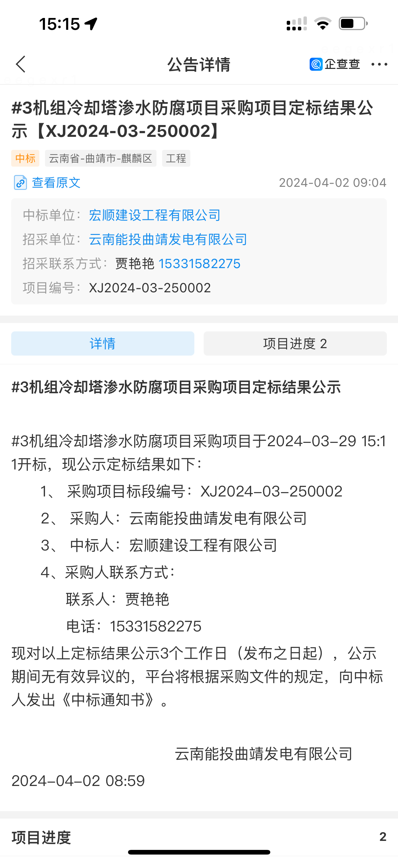 熱烈祝賀我公司中標云南機組冷卻塔滲水防腐項目